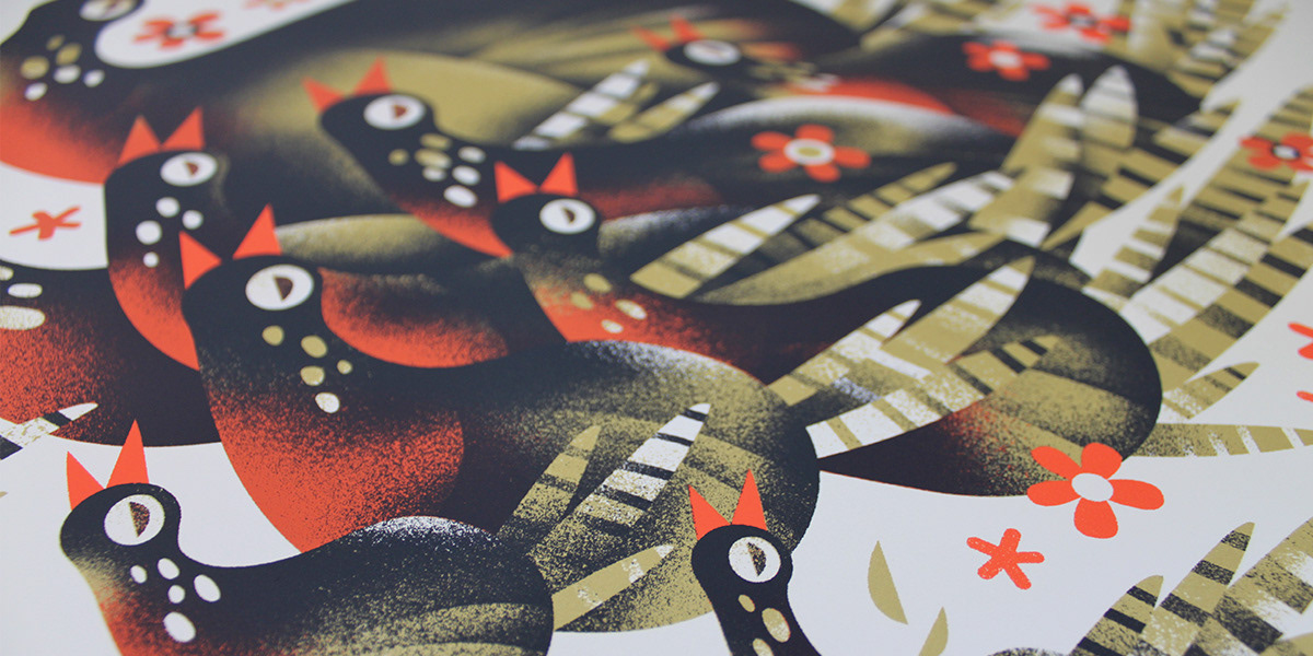 I work with a wide range of clients with varying expectations. Sometimes I work directly with a band and other times I work with promoters or artist managers. Some clients are extremely hands-off, and others want to be involved in every step of the process, from concept sketch to final color separations. Representing a musician’s work visually is always a fun and exciting endeavor.