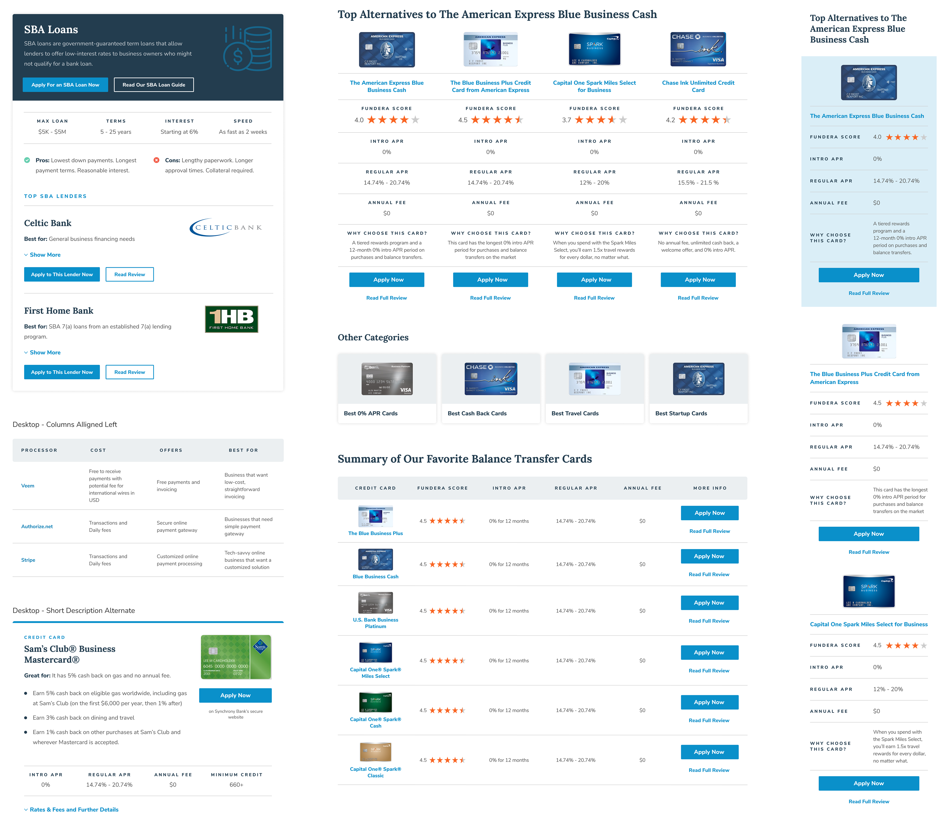 Once our updated visual identity was signed off on I began building out Fundera's library of product-focused modules that help users understand the benefits and differences between all of the different financial products that are featured on the site. My focus was always on helping our users make the best financial decisions possible based on their unique criteria.