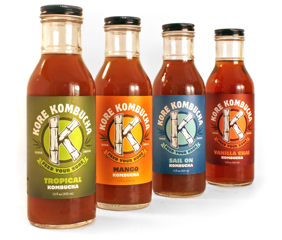 Kore’s initial product was Kore Kombucha, and the founder came to me with a design and direction already established by one of his collaborators. I was tasked with taking a pencil sketch (which included a bamboo “k” in a circular container surrounded various type lockups) and creating an adaptation that was modern, flexible, and would be the centerpiece for their product labels.