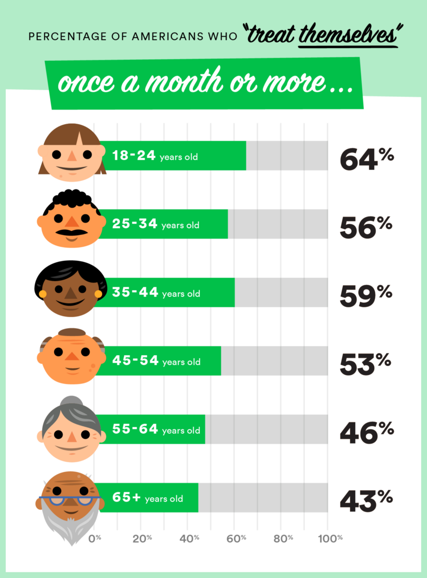 Below are images pulled from a study on how comfortable Americans feel spending money on themselves. The full piece can be seen here.